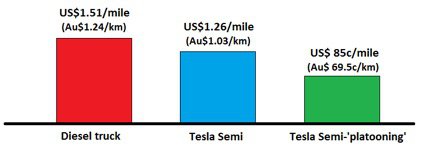 As an example, Tesla quote the following figures for their cost savings over similar sized conventional diesel trucks: