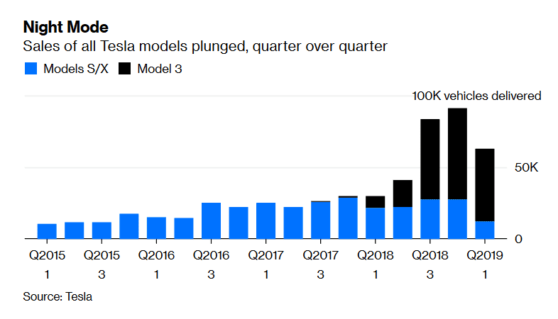 In terms of deliveries, this is an 8% drop in deliveries for the Model 3 from the prior quarter, and a hefty43% drop in deliveries for the Model S and X.