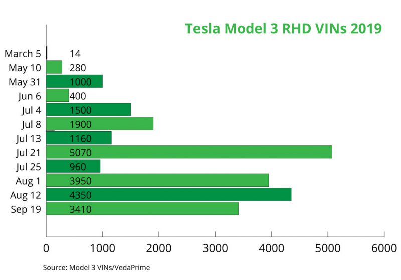 Additionally, we can reveal that Tesla has registered approximately 24,000 right-hand drive Model 3 VINs to date indicating the volume of orders that Tesla expects for these markets, as gathered by @VedaPrime and also vin tracker @Model3VINs.