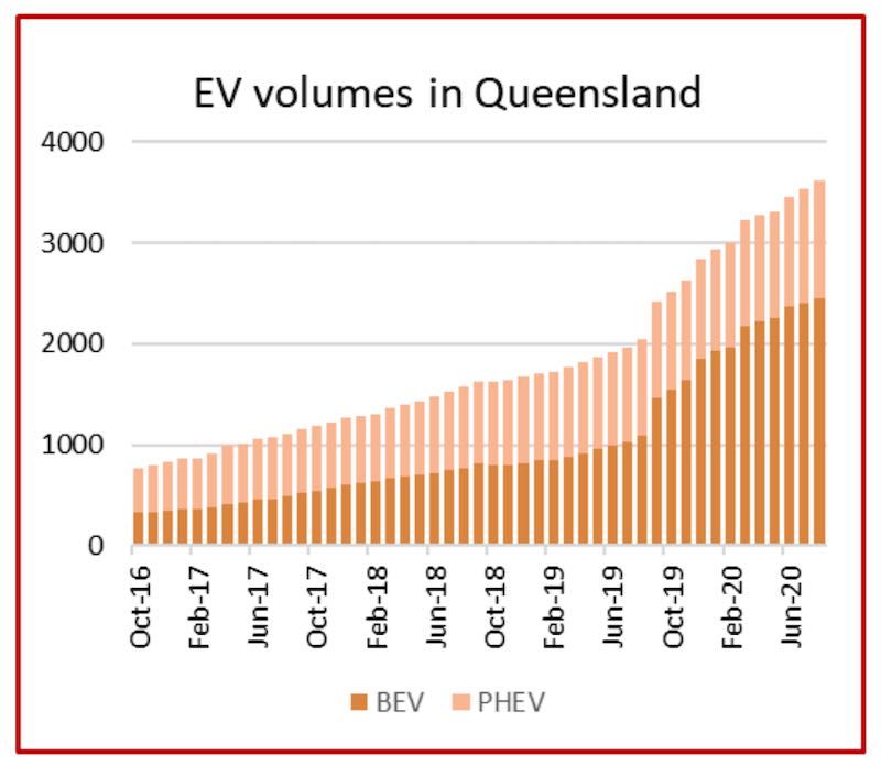 As you can see in the chart below, EV uptake in Queensland has followed the “slow but steady” adoption rate that has been set by the whole of Australia. But with more and more models coming to market, and prices starting to decrease, Energy Queensland says it expects the pace of EV adoption to accelerate from around 2023.