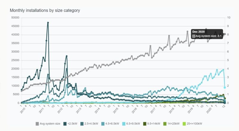 This nice graph from APVI shows the average household system in Australia is now over 8kW, so I’m taking that as evidence that adding enough solar to cover your house and car load is feasible, and fairly practical. It’s what we’ve done.