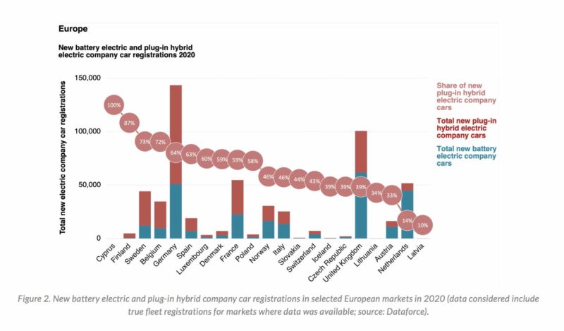 These figures are in contrast to Germany. There, 64% of new electric passenger cars registered in company fleets were PHEVs in 2020.
