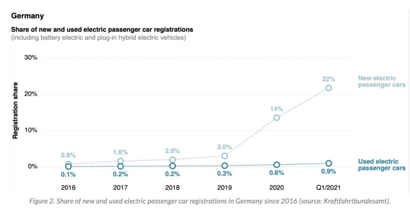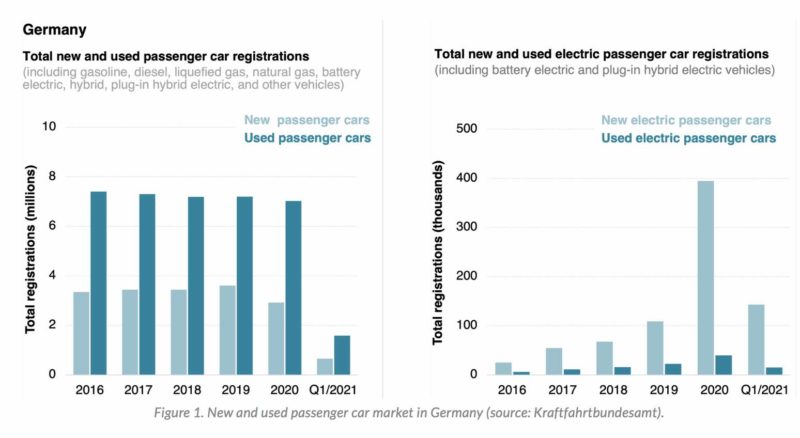 Of course, the overall passenger car market has been developed over many years, while the electric car market is just evolving. Sales of electric cars in a certain year will likely only become visible in the used-car market after a few years.
