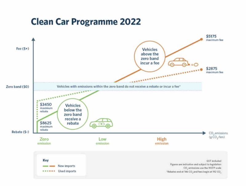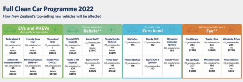 According to the material provided by the New Zealand Transport Agency, the dual nature of this “feebate” will pay for the rebates by taxing high emitting ICE models, which will go into effect from January 1, 2022, as smaller rebates for low emission vehicles will also come into force.