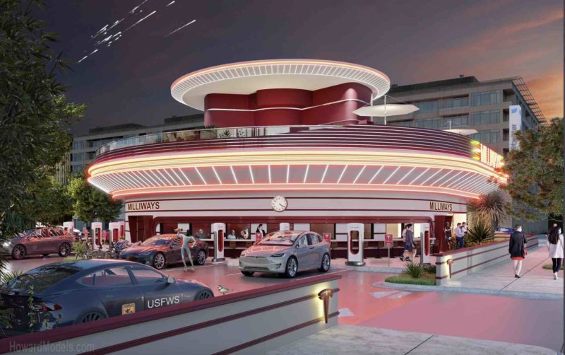 Musk first flagged the idea way back in 2018, and followed through a year later with initial plans, which have now been adapted for a new facility in Hollywood, with construction plans flagging a semi-circular two-story building with two movie theatre screens, and of course 29 Supercharger stalls.