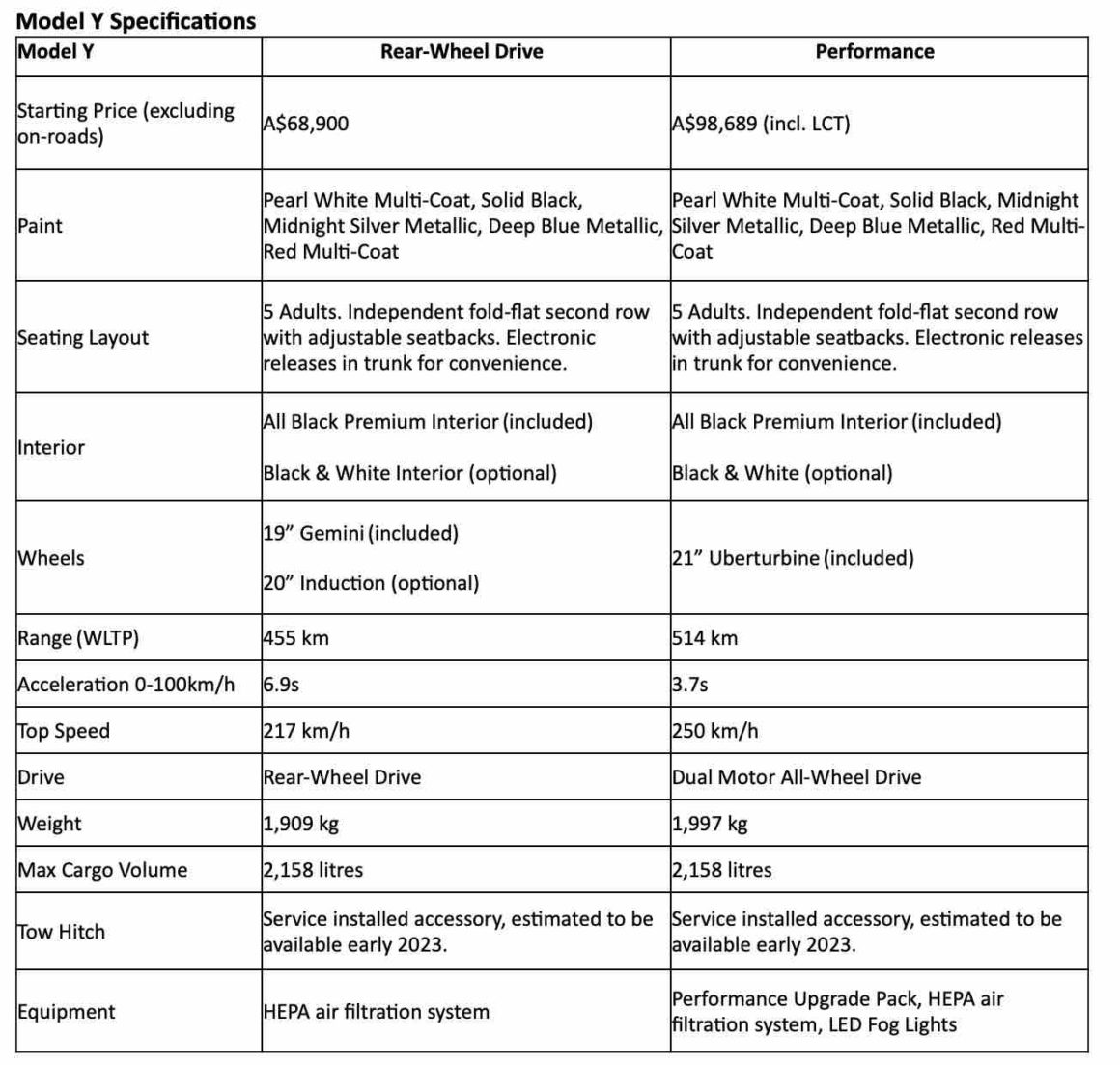 Notably, the pricing for Model Y means it will not be eligible for any rebates, which have a maximum threshold of $68,750 and are available in NSW, Victoria, South Australia and Queensland.