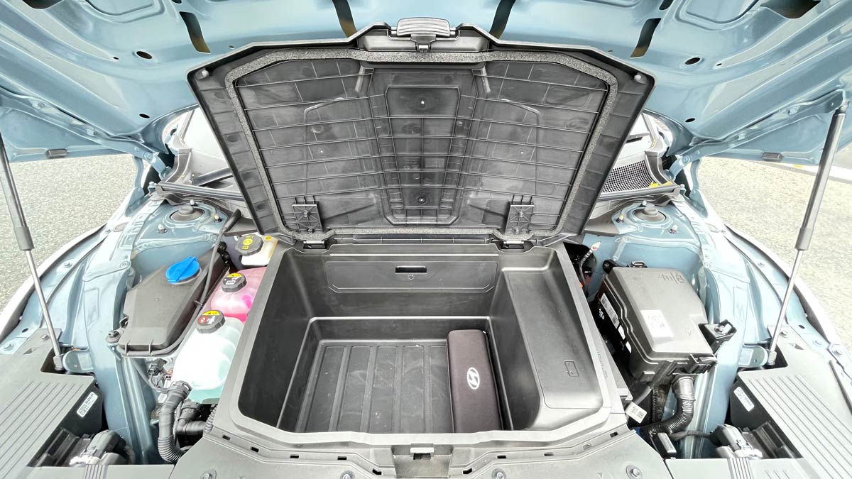 In the front storage area underneath the bonnet (known as a “frunk”), the Model Y also wins hands down. It has 117 litres worth of space under the bonnet, while the Ioniq 5 has just 24 litres in the AWD variant, and 52 litres in the RWD.
