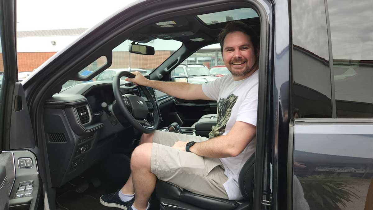 Stopping in California, Whitehead shared some photos of he and partner Jessica as they checked out Ford’s electric answer to the iconic F-150 pickup.