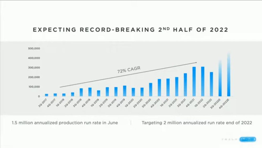 Speaking at the 2022 Annual Meeting of Stockholders on Thursday from Giga Texas, Musk told a lively crowd – with at least one 10-gallon hat in attendance – to expect a record-breaking second half of 2022, as the company’s existing four gigafactories built momentum.