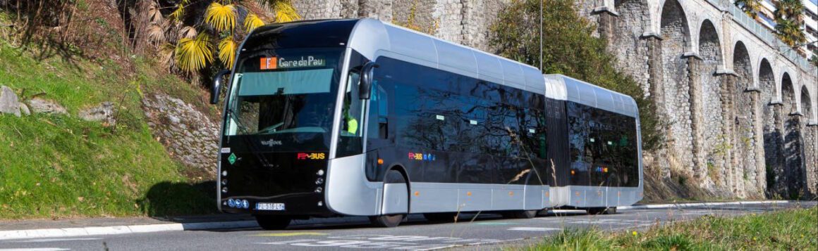 Pau’s hydrogen-powered BRT (bus rapid transit) system began operation in December of 2019 using eight hydrogen fuel-cell buses made by Van Hool. It is committed to buying four more, but the city says this will be the last and future purchases will be battery electric.