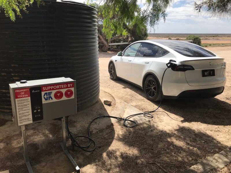 Thanks to the determination of Jon Edwards from the TOCEVA racing team and with the support of the Australian Electric Vehicle Association, Tesla Owners Club Australia, Tesla Owners Club Western Australia and many EV owners from across Australia, we are happy to announce the installation and commissioning of a Delta 22kW DC charger at the Nullarbor Roadhouse in South Australia.