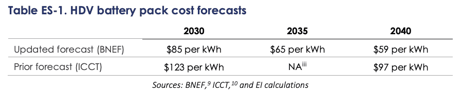 The new report from Energy Innovation says that because heavy-duty vehicles (HDVs) require larger batteries, their purchase prices are much more sensitive to battery costs.