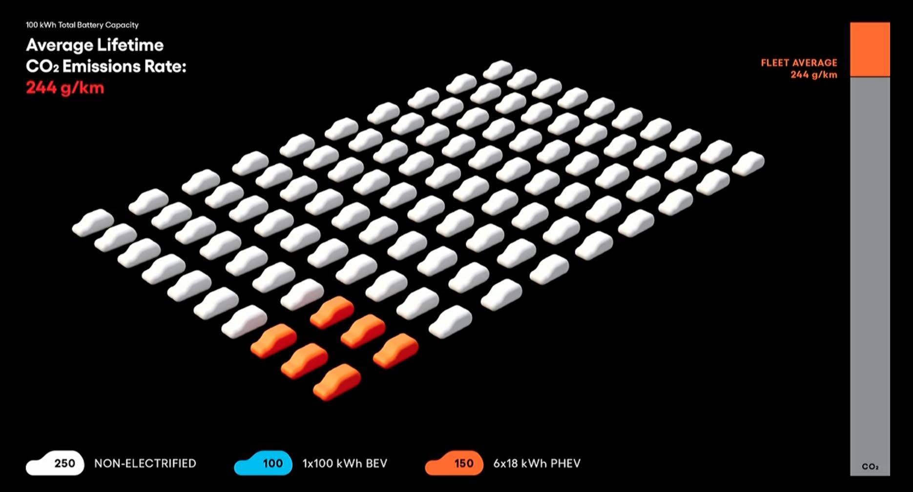 “So we can distribute that same amount of batteries over 6 vehicles instead rather than one. And it turns out that even though each one of them emits a little bit more than the pure battery electric vehicle the fleet average because we’ve replaced 6 instead of one is actually better.”