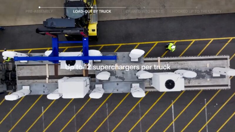 At the end of the video, the company also shared the largest site it has rolled out using this method of deployment. It’s a 76-supercharger stall site in the US.