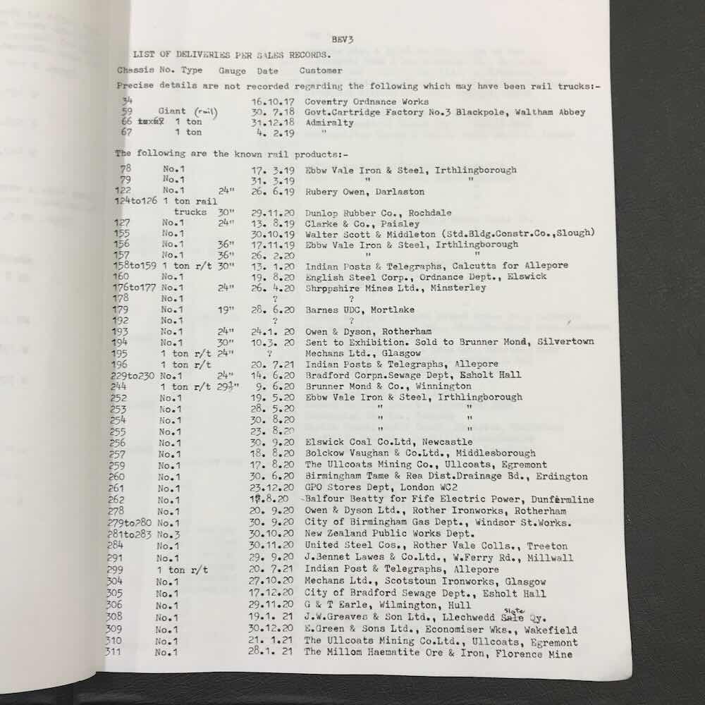 By the 1920s B.E.V. was supplying electric trucks and locos to customers around the world. Documents from Windgrove and Rogers, who acquired the company in 1926, show that B.E.V. sold electric trucks to the Buenos Aires Great Southern Railway in 1920 and the Chinese Eastern Railway in 1928. New Zealand Public Works Co. and Indian Posts and Telegraphs.