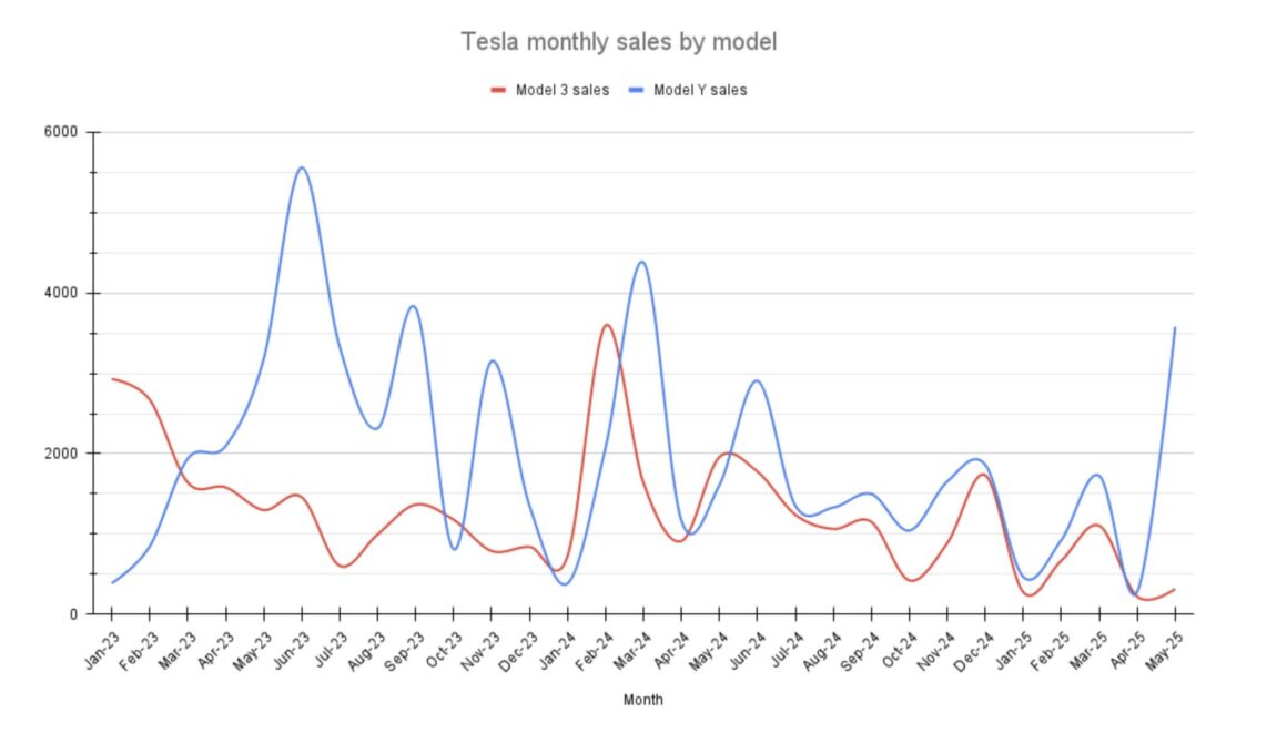 The Model Y rebound in May was significant, as illustrated by the graph above, but its monthly sales were still well below the levels of mid to late 2023, and in March last year.