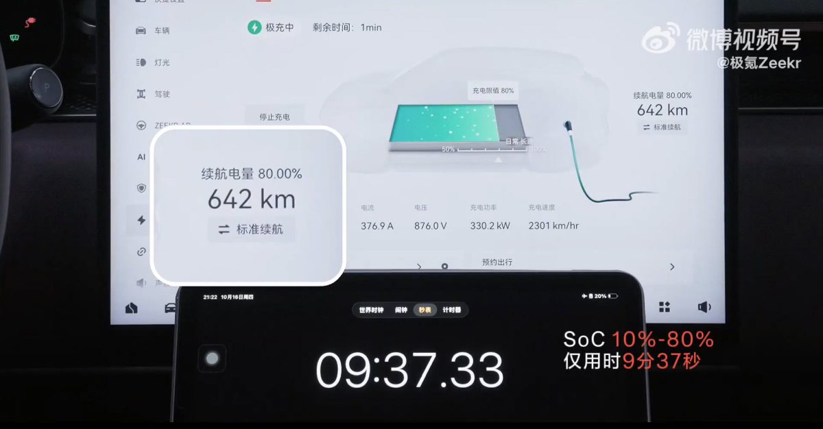Getting to 80% in 9 minutes 37 seconds, and adding 562 km of CLTC range to the car. At that state of charge, the car now had 642 km of range.