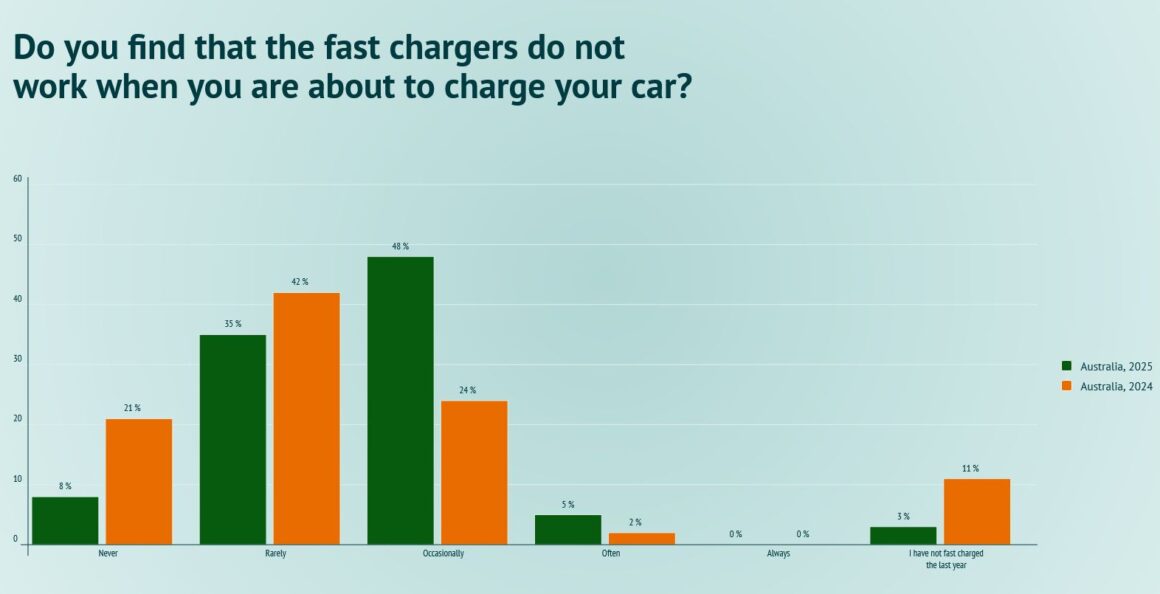 As for Australia: it seems that with experience, we are becoming less worried about the myths (like the battery isn’t going to last), but with that experience also comes greater frustration with our fast-chargers!