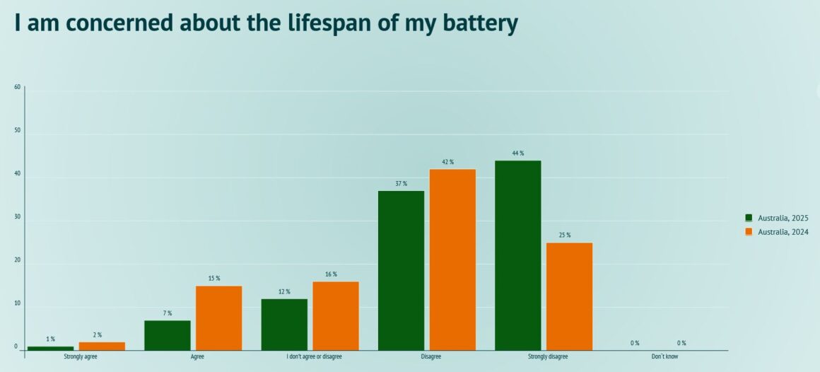 - 45% of respondents say that lower energy costs were one of the reasons they chose an EV. (Australia: 41% – up from 39% in 2024).