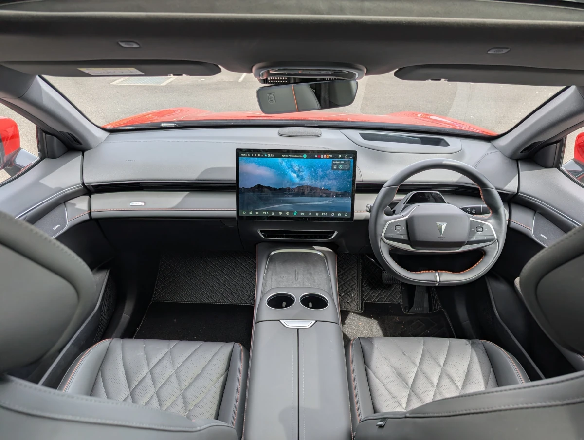 At the centre of the minimalist Deepal S07 cabin is a 15.6-inch touchscreen that tilts from side to side, depending on whether the passenger or driver sits down first. This feels like a gimmick and something else that can potentially go wrong, rather than something I found genuinely helpful.
