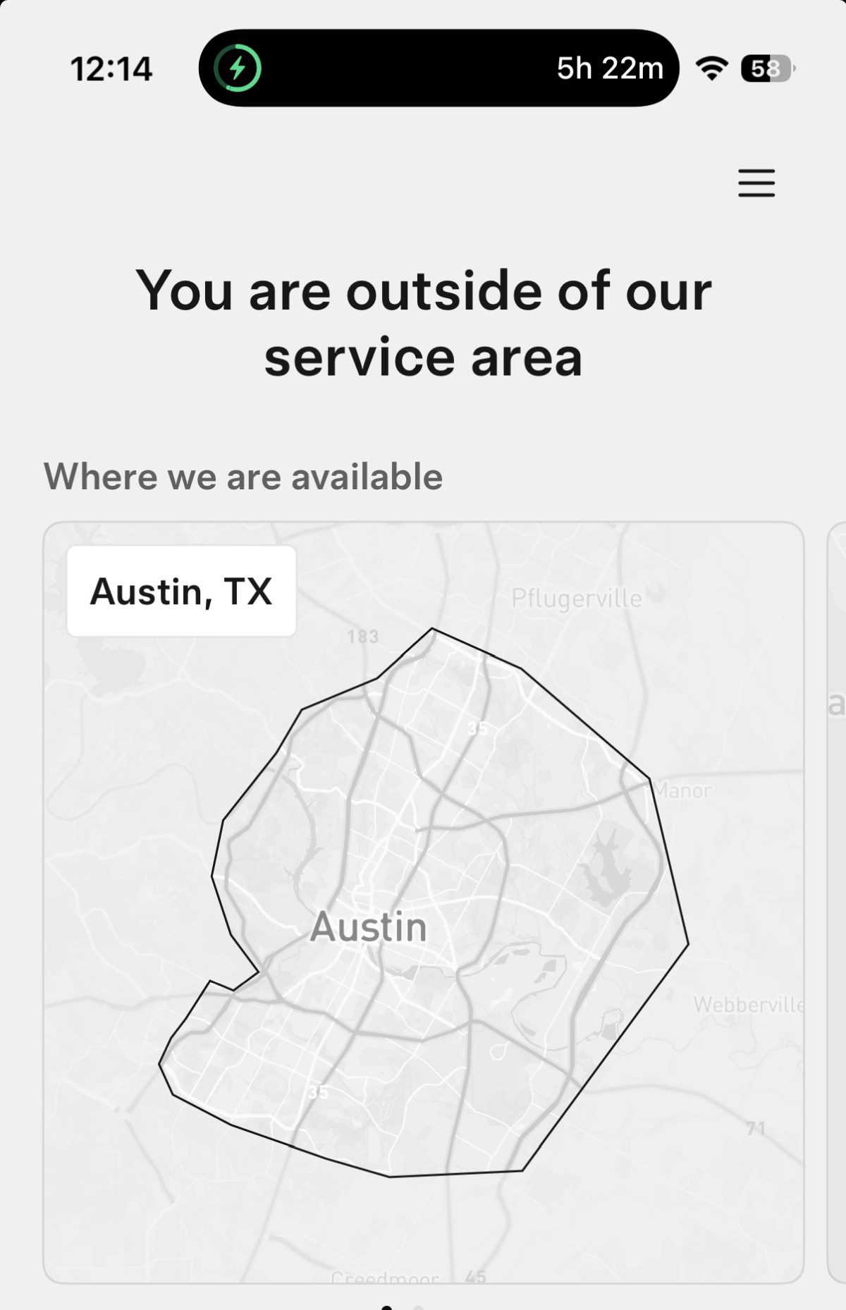 After downloading and installing the app, it does show that Australian users are outside the service area, with the map defaulting to Austin, Texas, where the service is available in a large geo-fenced area.