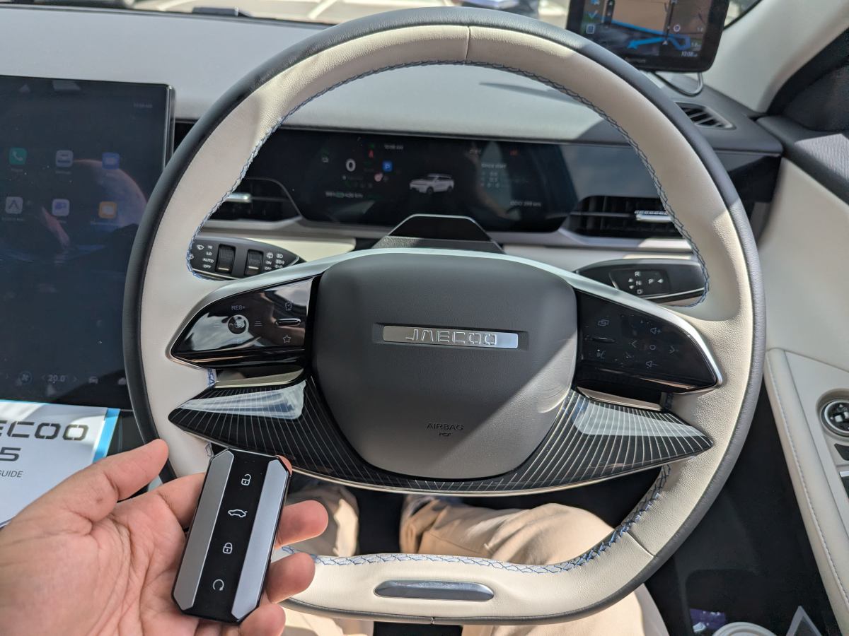 The J5 EV has 18-inch alloy wheels, powered mirrors and tailgate, a frunk, a panoramic glass roof, a 13.2-inch Infotainment screen, an 8.8-inch instrument cluster, a 50 W wireless charger, heated and ventilated seats, an 8-speaker sound system, multiple drive modes, a powered tailgate, and much more.