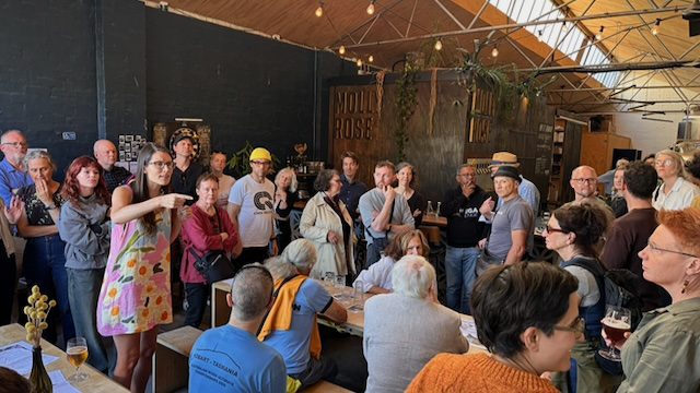 Perhaps it was the lure of a drink in the warm autumn sunshine, but the event attracted a broad spectrum of the community, and four of the eight councillors who will have to vote on the decision were present: Mayor Steven Jolly, Cr Sophie Wade, Cr Sarah McKenzie, and Cr Ken Gomez.